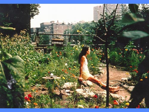 The gardeners called themselves the “Green Guerillas.” They were very democratic. Everyone who participated in the garden had a voice in running it. They set strict rules of organic farming, no drug dealing, and responsibility to maintain one’s gardening plot. Since they chose plants that would grow easily in New York, they produced armloads of vegetables like tomatoes and cucumbers within a few months. They were able to see and eat the fruits of their labor, and soon everyone in the neighborhood appreciated the benefits of a community garden for their inner-city neighborhood, where there was no other place for gardening. The garden was an attractive gathering place for community events, entertainment shows, instructional classes, and simply relaxing outdoors. It provided refuge from the crime-infested streets, and it supplied work and food for unemployed neighborhood residents.